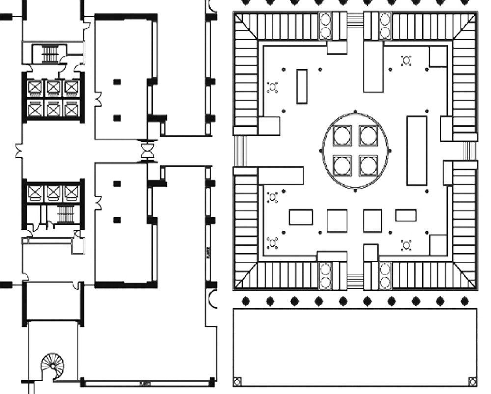 Two freight lifts servicing levels 3 and 4 of the office area.